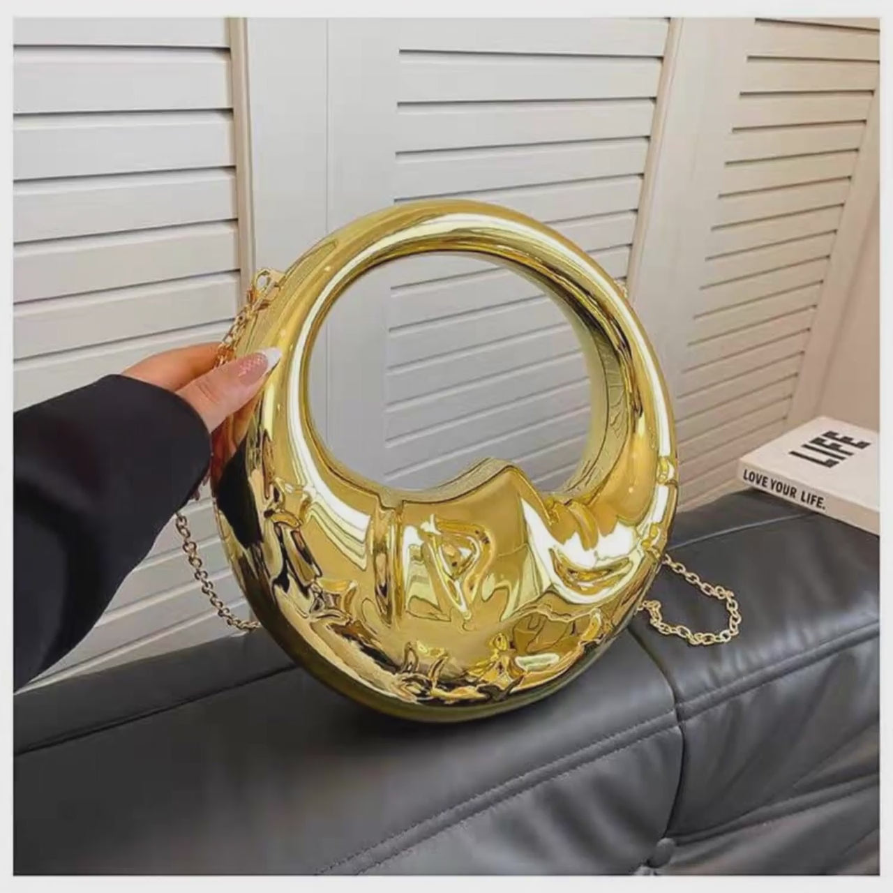 Quality : Acrylic finish comes with chain sling belt Material : Acrylic (Ultra Premium) Size : Medium Color : Golden (Exclusive) Free Delivery all over India